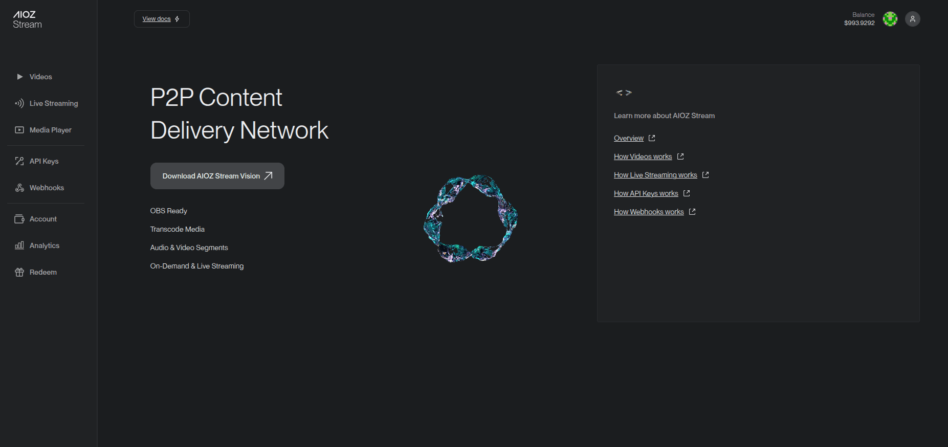 With your wallet topped up, you're ready to start using the services provided by AIOZ Stream.